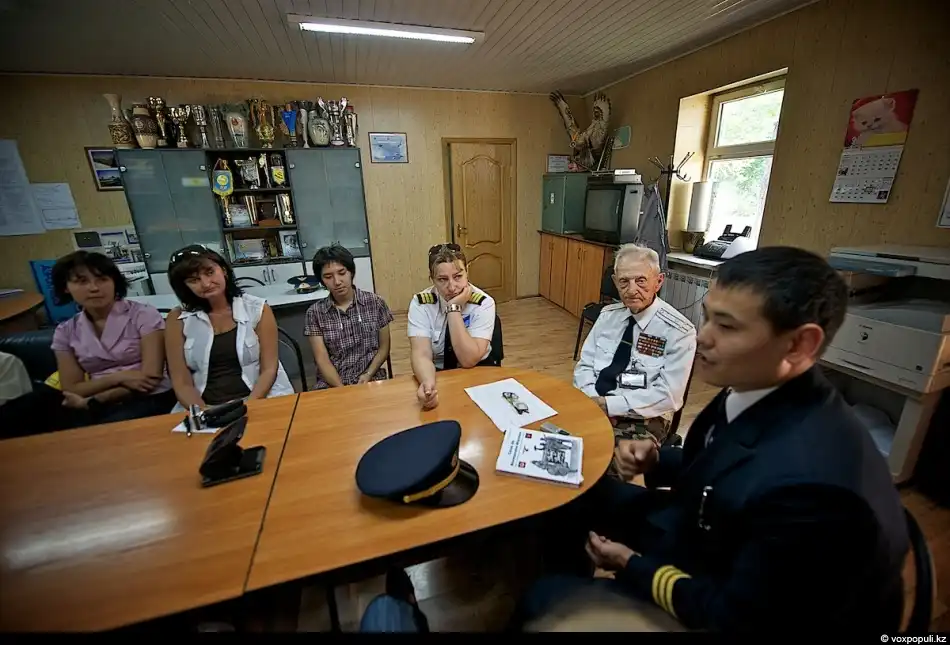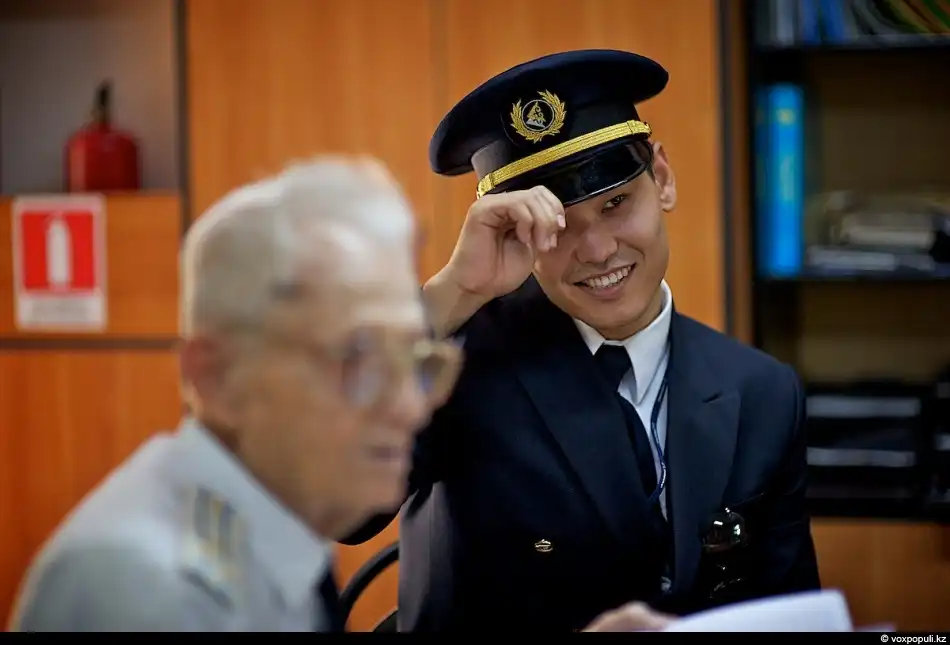 5. На одной из таких встреч присутствуют его бывшие ученики, а ныне действующие вторые пилоты Нуржан Акимов и Полина Павлова. Они, как и все студенты летной Академии, когда-то проходили практику в этом аэроклубе и вполне могут поделиться своим опытом с ребятами, которые сейчас обучаются
