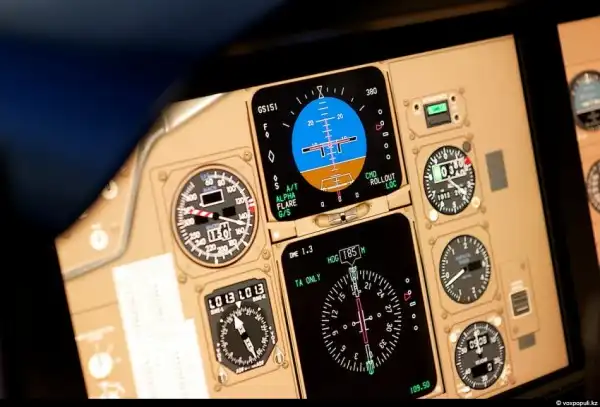 26. Усовершенствованный виртуальный тренажёр состоит из плоской панели с сенсорным экраном, к которому подсоединено различное оборудование воздушного судна, такое как рычаг управления двигателем, панель автопилота и блоки управления и индикации