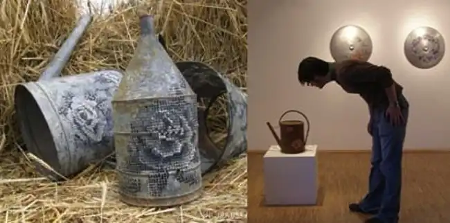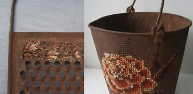 Новыми предметами, которые вдохновили Северию на очередные свершения, стали утюги (на них уж сам Бог велел вышить рисунок – дырочки же есть!), ведро, торшеры, лейки и лопаты. По словам художницы, все они по-своему красивы. Вот только внимания на это никто не обращает. Теперь уже на выставках литовской рукодельницы от такого внимания нет отбоя. На всех этих металлических предметах она вышила цветы или даже целые букеты. А одно из ведер она вообще сделала в форме торшера. Получилось очень ярко, экстравагантно и необычно.