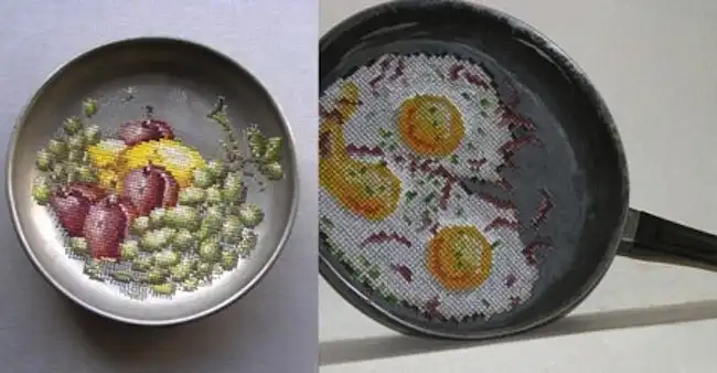Вы спросите, что же такого сделала юная особа, чтобы получить столь широкое признание – просто вышивала и все? Да, все! Казалось бы, все до неприличия просто. Северия вышивает крестиком, но на металле! Чего никто до нее не делал. Сначала она взяла себе на разработку несколько предметов кухонной утвари: ложки, терки, кастрюльки. И попробовала работать на них. Для этого она продырявила металл на маленькие отверстия и добавила немного фантазии.
