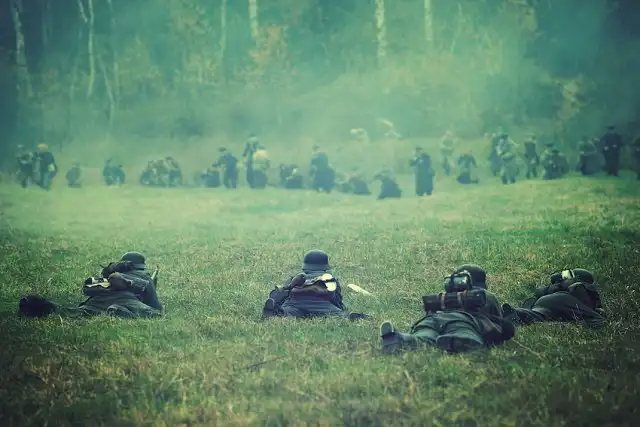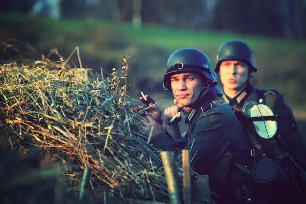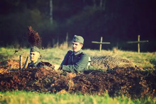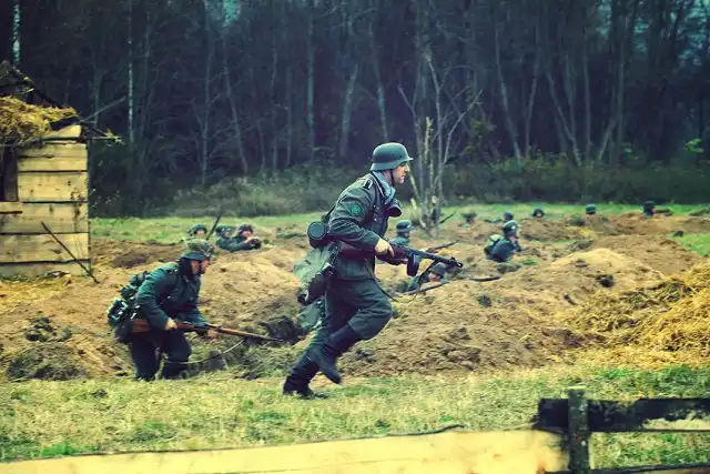 Сценарий реконструкции в этом году отличался от предыдущих лет. На этот раз "войска Вермахта" изначально удерживали "деревню", а "солдаты Красной армии" вынуждены были выбивать противника с хорошо укрепленных позиций.