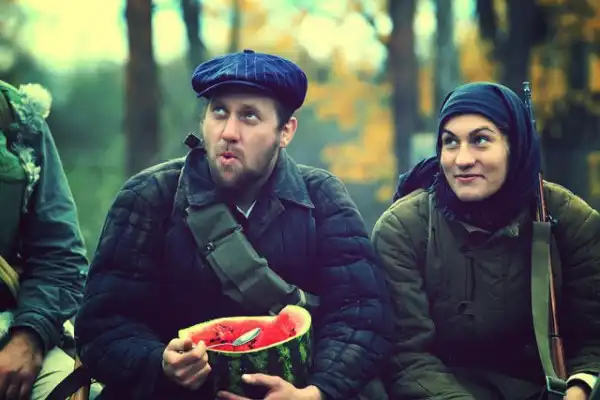 К сражению каждый готовился по своему. Бойца партизанской бригады "дяди Бори" заправлялись арбузом