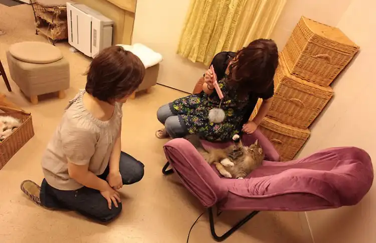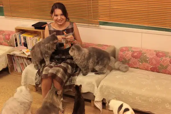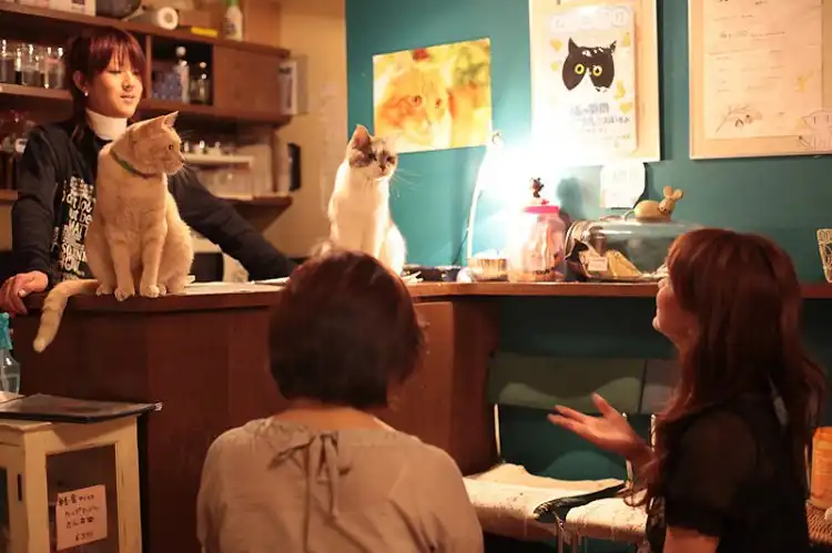 В Японии существует достаточно распространенный формат кафе – кошачье кафе. Там можно посидеть с друзьями, выпить чай-кофе, и при этом вас будет окружать кошкостадо из 20-30 голов.