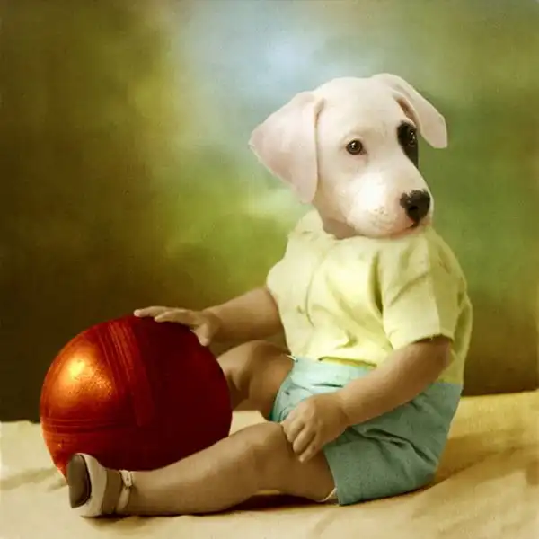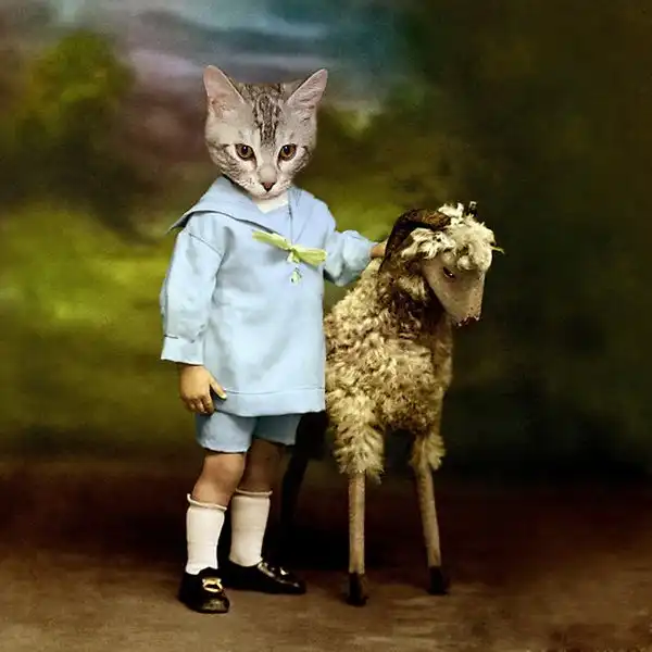 У француженки Мартин Рох (Martine Roch) две страсти: животные и творчество. Мартин создает милые и забавные коллажи из старых фотографий и фотографий животных.