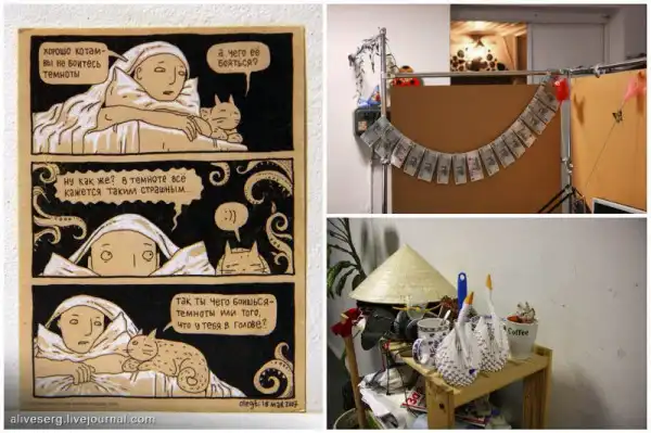 А это, собственно, ее рабочее место и рисунки – проекты будущих сцен для мультфильма