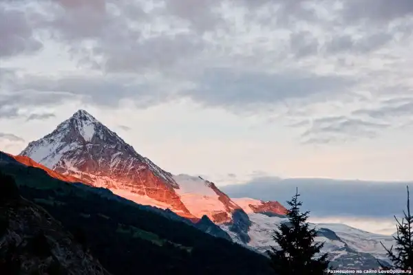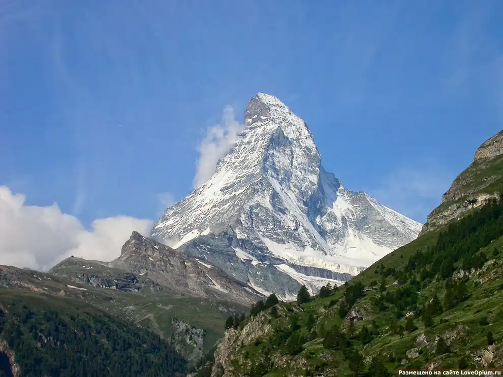 Живописнейшая гора в Альпах Ма́ттерхорн высотой 4478 метра, расположенная на границе между Швейцарией и Италией