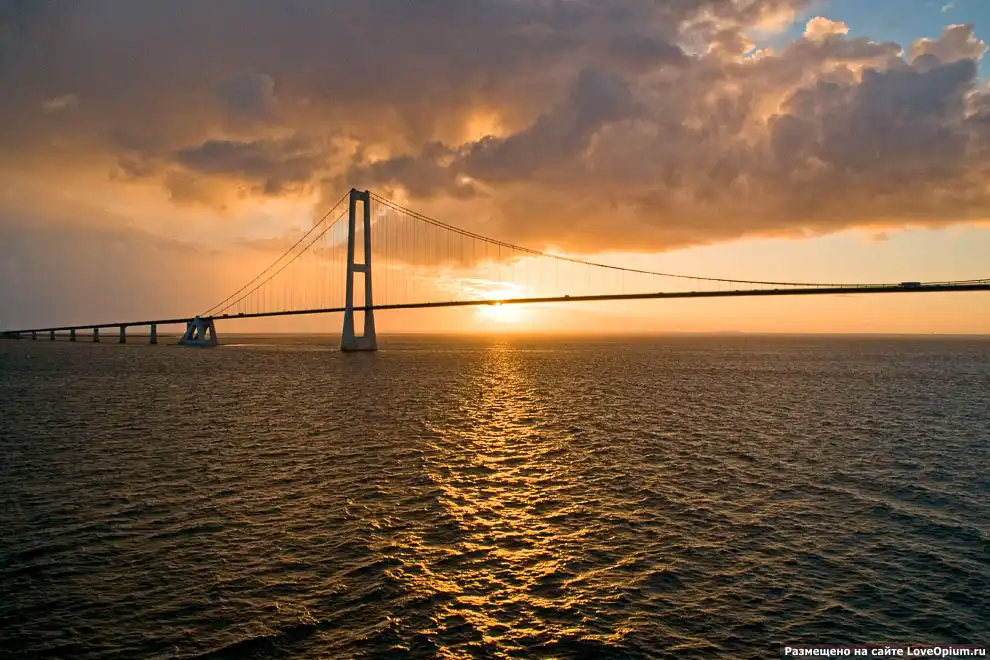 Грандиозный мост Орезунд, соединивший Данию и Швецию – это четыре полосы шоссе и две железнодорожные линии, протянувшиеся через пролив Орезунд примерно на 16 километров:
