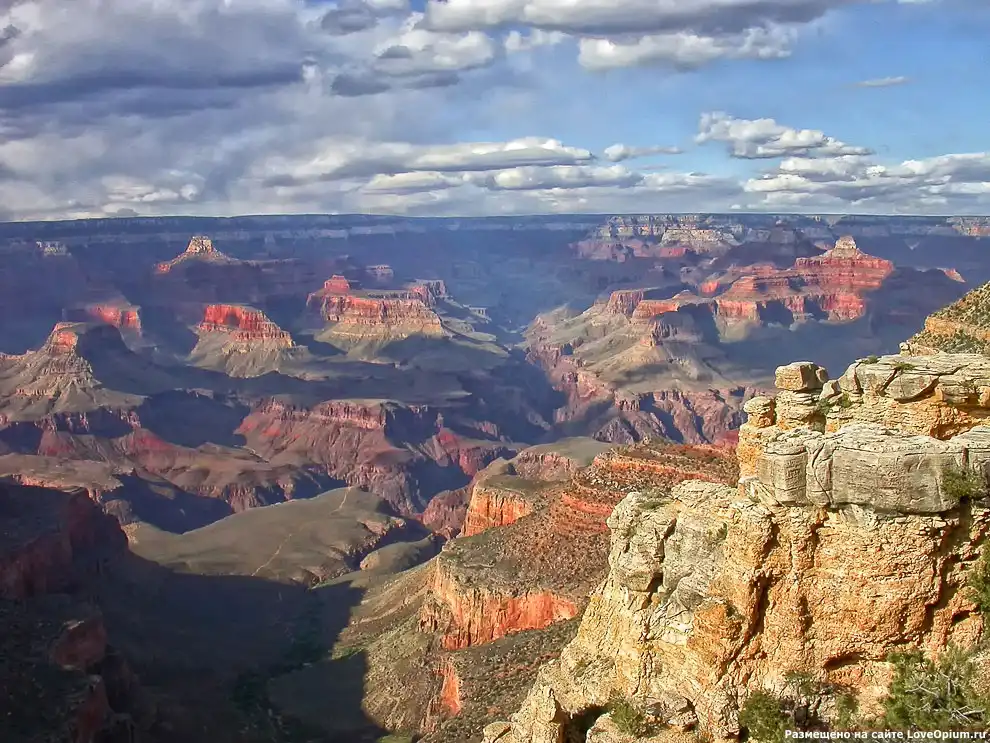 Гранд-Каньон — один из глубочайших каньонов в мире (глубина до 1600 метров). Он находится на в штат Аризона, США: