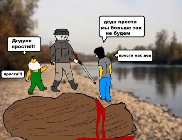сукины дети!жестокие и беспощадные!никогда не слушают старших!а я бы не стреляла-пусть бы этих долпоепов мишка сожрал!из таких уроды моральные вырастут!таким детишкам никогда не понять почему дед медведя убил...