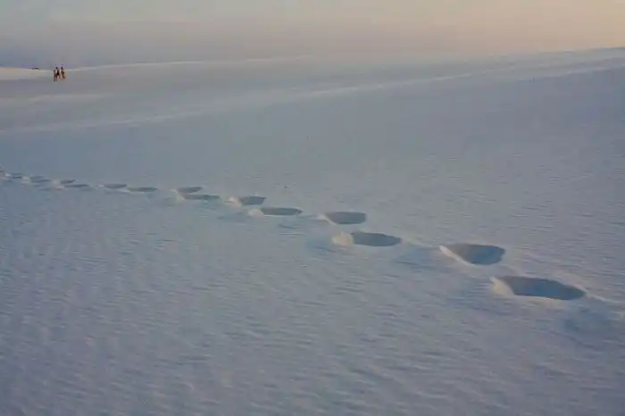 и именно эта вода скапливается между барханами, создавая поразительные пейзажи.
