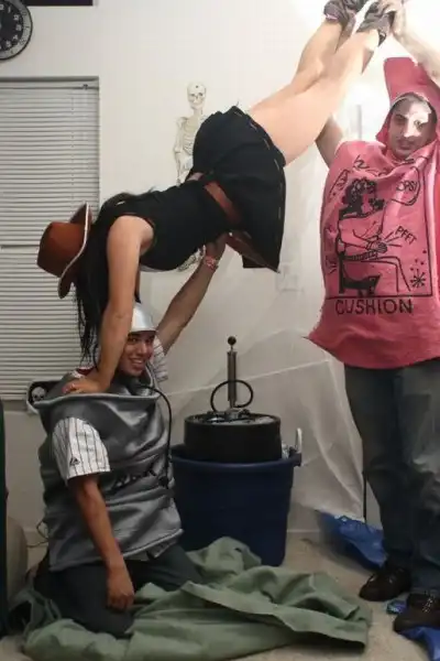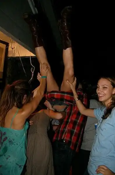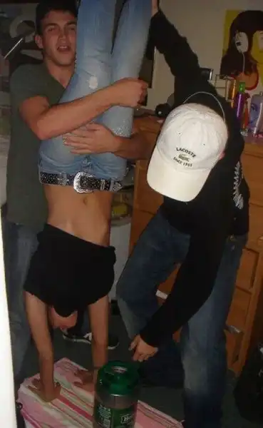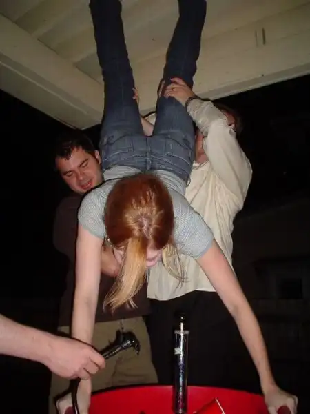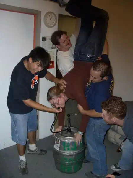Друзья поднимают человека вверх ногами, дают ему трубку с пивом, и тот пьет пока не устанет :)