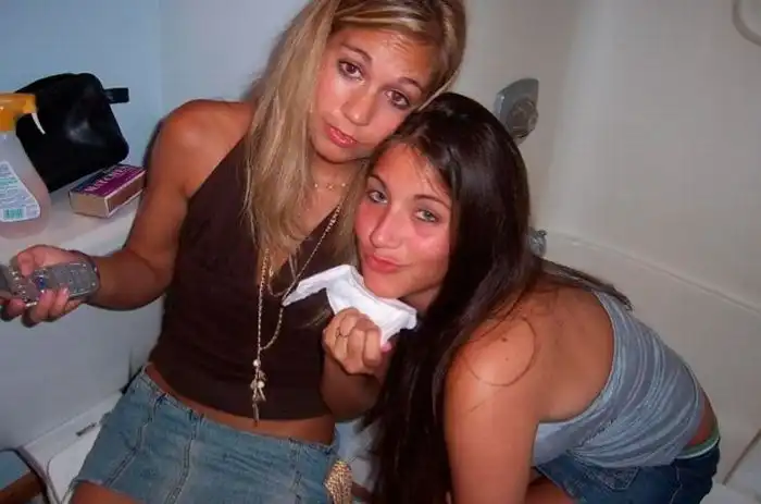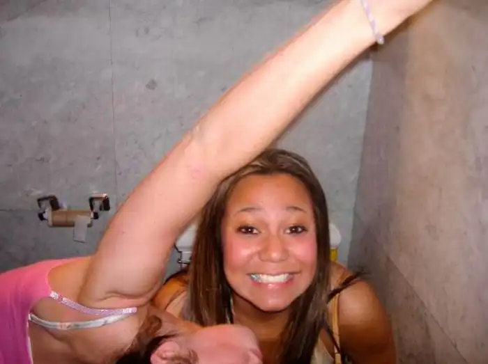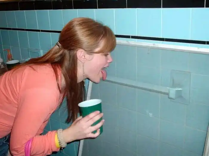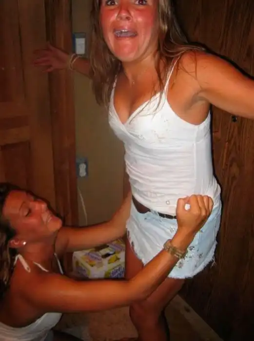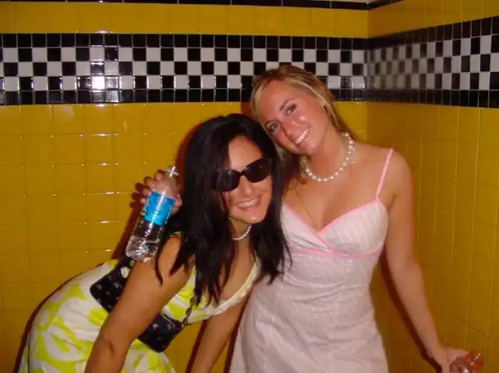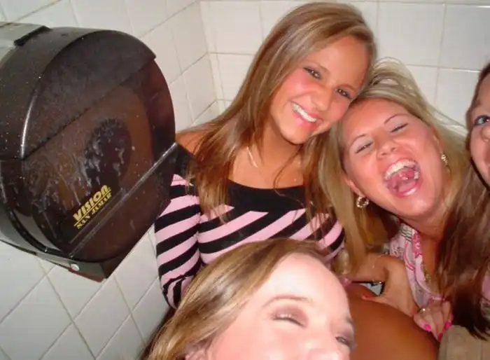 Немного выпившие девушки шалят в ванных комнатах.Чего только пятница с людьми не делает :)