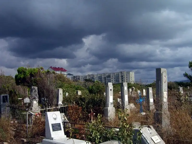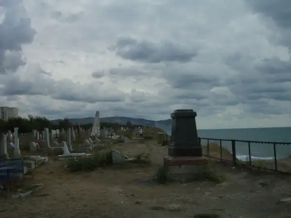 Это кладбище находится прямо на берегу Чёрного моря посреди Анапы. Говорят, его сейчас начали восстанавливать, ухаживать и прочее.