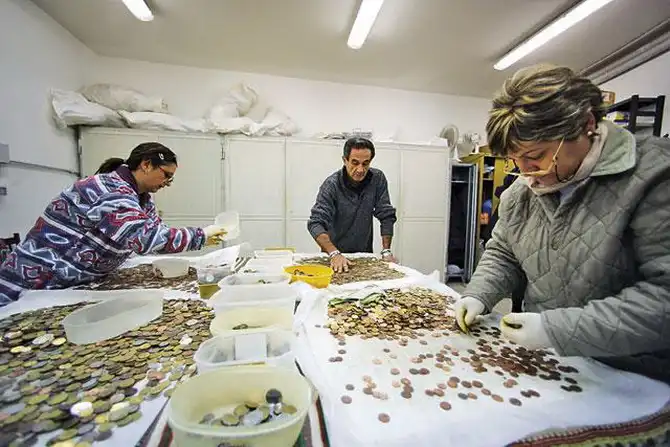 Муниципалитет Рима время от времени проводит чистку знаменитого фонтана Треви — выгребают из него монетки, брошенные туристами «на счастье». Процедура проводится под присмотром карабинеров, ведущих строгий учет мелочи. Ибо согласно специальному указу каждая монетка становится муниципальной собственностью, стоит ей коснуться дна фонтана. Поверье о том, что турист, пожертвовавший монету Нептуну, обязательно вернется в Вечный город, делает Риму неплохую кассу. Чистильщики ежегодно достают из фонтана сотни тысяч евро. Издавна собранные средства направлялись на благотворительность. Но в этот раз власти Рима решили потратить их на нужды города — кризис, однако.