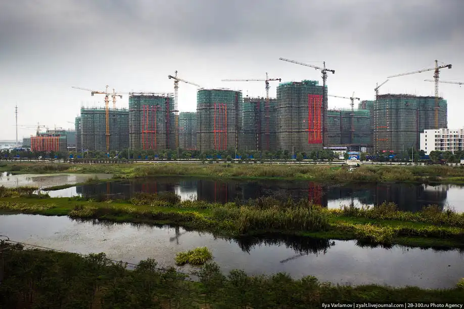 21. А это вид из окна скоростного поезда. В Китае можно ехать сотни километров и не увидеть ни единого пустого клочка земли. Кругом стройка.