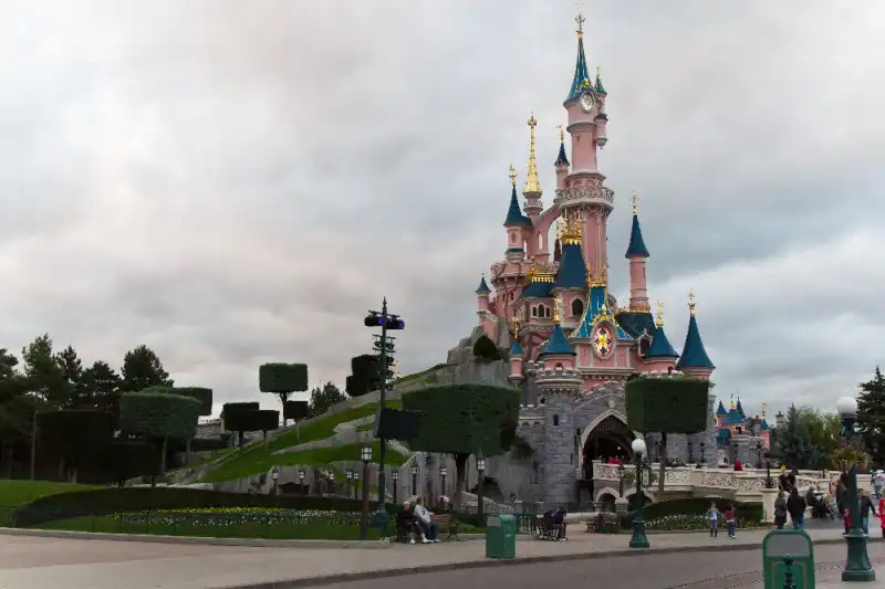 Парижский Диснейленд включает в себя несколько парков, сгруппированных вокруг замка Спящей красавицы, символа Диснейленда и окружённых узкоколейной железной дорогой по которой ходит поезд с настоящим паровозом.