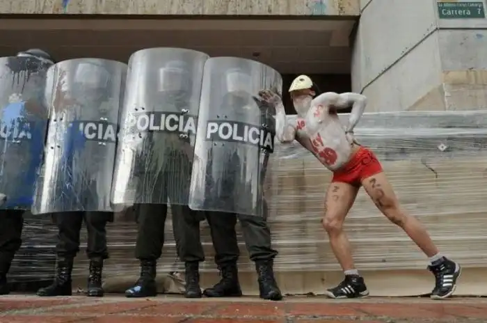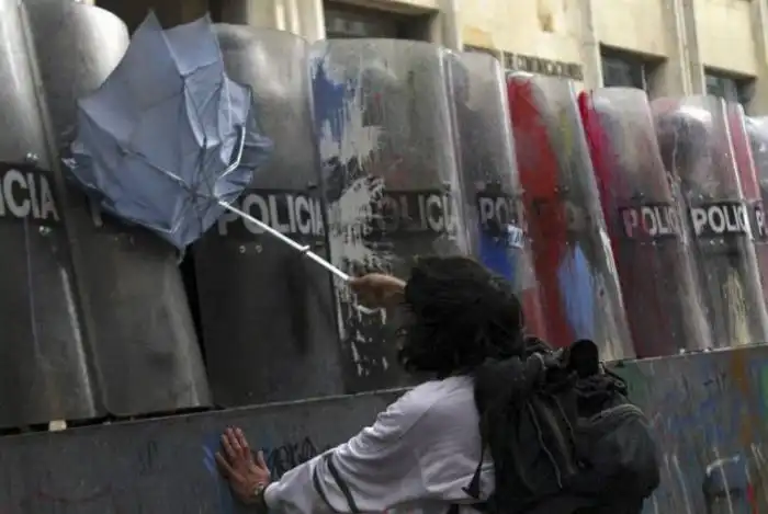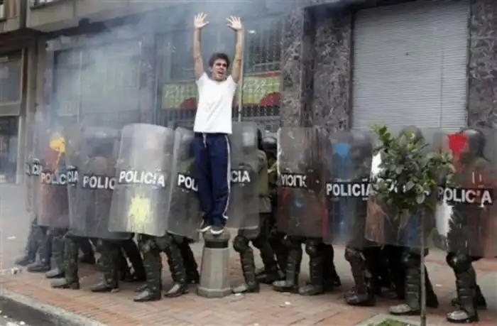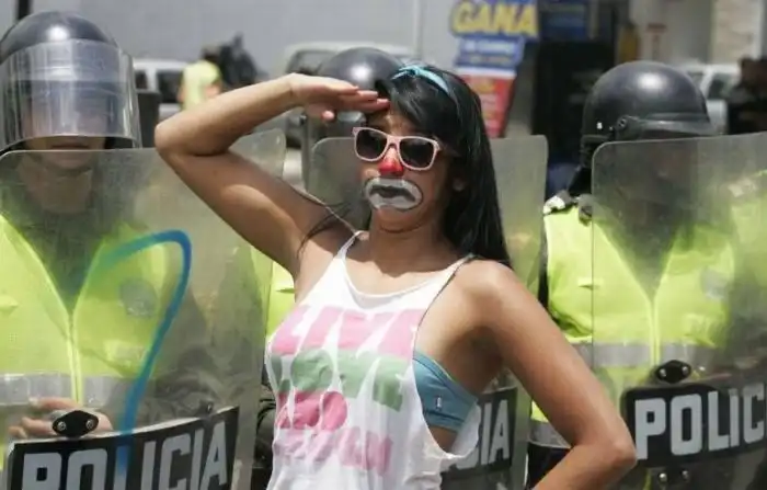 Они раскрашивают их шиты красками, обнимают грозных стражей порядка и целуют их в шлемы.