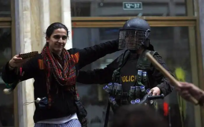 Некоторые протестанты на агрессию со стороны полицейских отвечают любовь :)