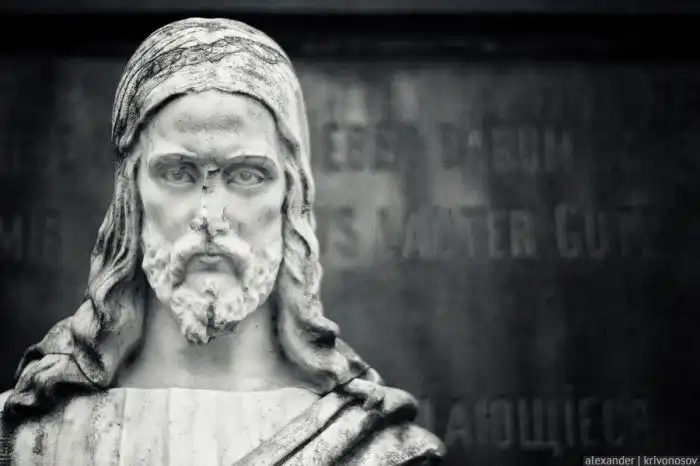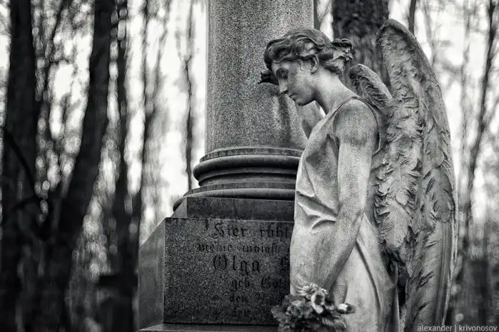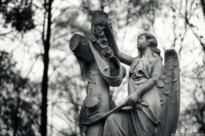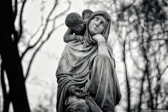 На кладбище множество скульптур, которые хранят в себе память об усопших.
