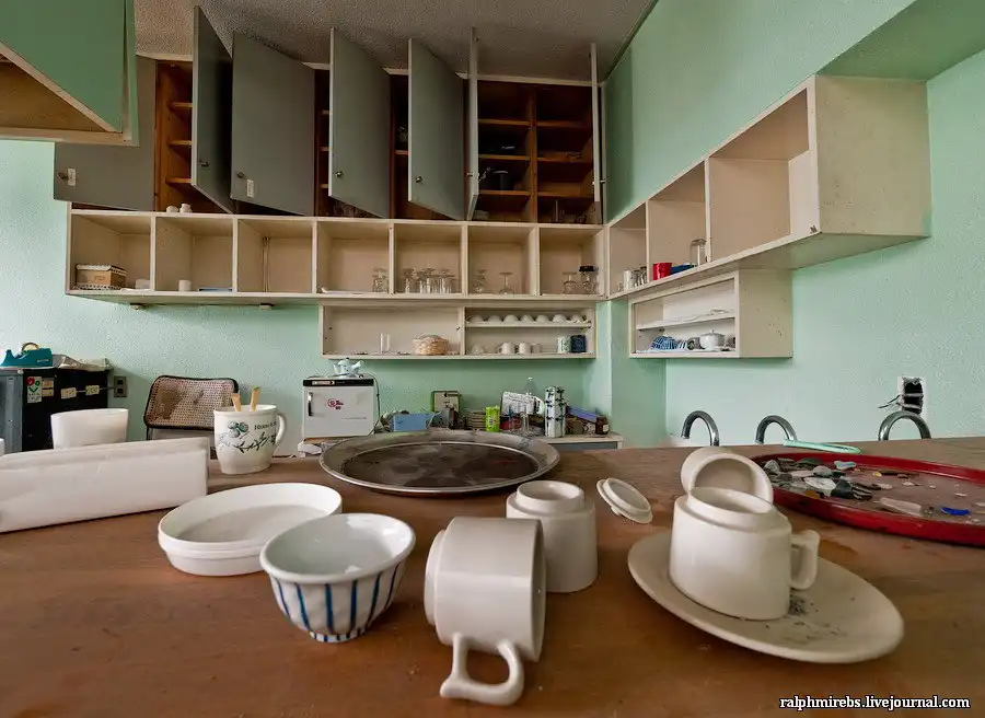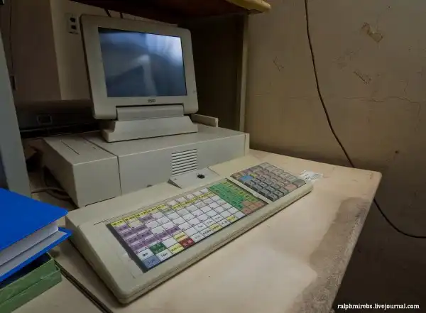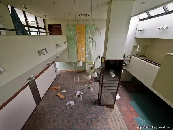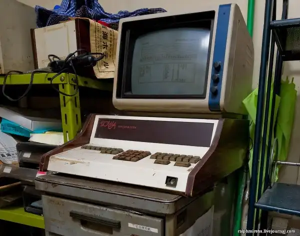 Электронная пишущая машинка, принимаемая всеми за ноутбук. Такую машинку я встречаю на объектах уже четвёртый раз.А ещё в этом отеле я как-то напугал японцев. Дело в том, что идя однажды по коридору, я заметил красное свечение бьющее из-за угла. Это была лампочка подсветки автофокуса в фотоаппарате, после чего последовала и яркая фотовспышка. Притаившись я услышал тихие голоса - это была парочка местных любителей заброшки - после чего громким и грубоватым голосом спросил по-японски "Кто тут!?". Парочка, услышав слова и не видя меня из-за угла, резко сорвалась с места и побежала со всех ног прочь в сторону лестницы. Видимо, с перепугу, они приняли меня за охранника.