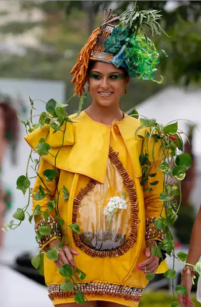 Показ необычной «экологической» коллекции от ведущих модельеров и дизайнеров состоялся в Колумбии. Основой моделей, принимавших участие в показе, являлись органические элементы, листья, трава, семена растений, цветы, натуральные волокна и многое другое, что может предоставить нам природа.