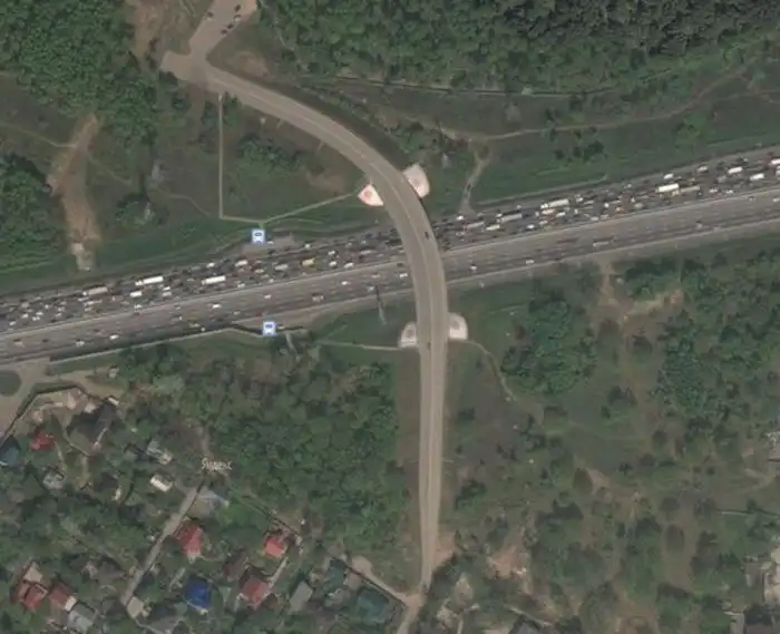 87 км МКАД. Хороший путепровод над 10-ти полосной кольцевой дорогой.