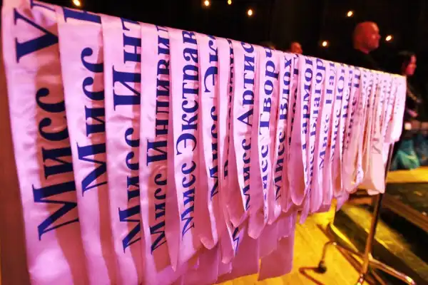 Почетные ленты участниц конкурса «Краса России-2011» в концертном зале «Космос». © Виталий Белоусов/РИА Новости