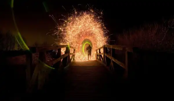 Удивительные игры со светом.Для создания такого снимка потребуется фотоаппарат с долгой выдержкой, фонарики и светодиоды.