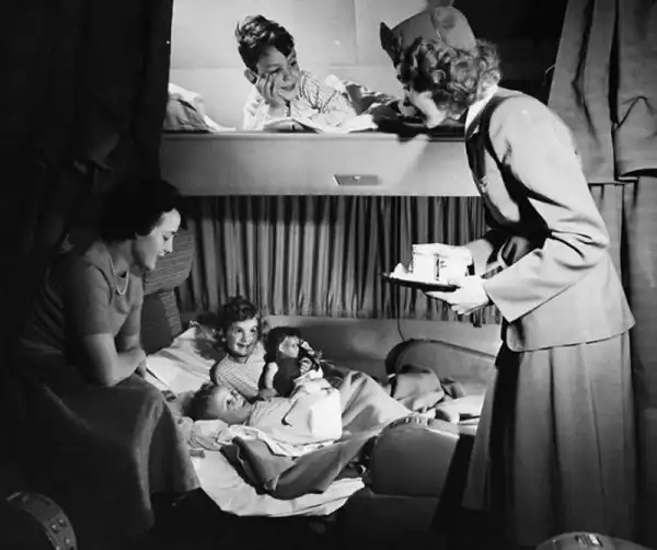 11. Дети на стульях, которые раскладываются и превращаются в кровати, во время фантастического полета в 1948 году, во время которого им приносили завтрак в постель. (Bettmann / Corbis)