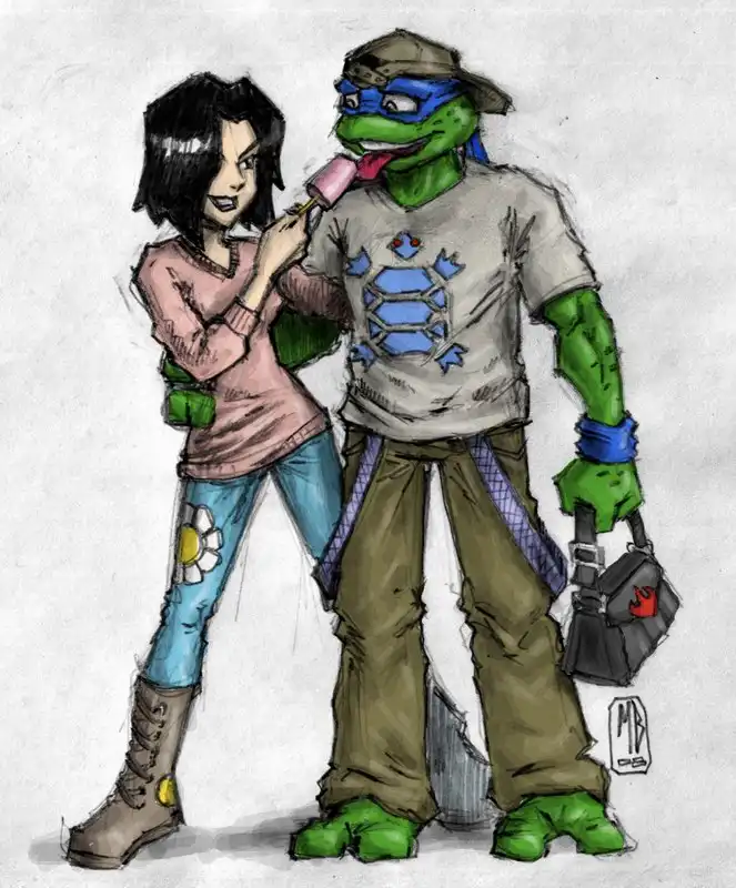 Хех, Леонардо и Караи. По мультику, то враги, то друзья. Интересно какие детишки у них получатся ^ ^