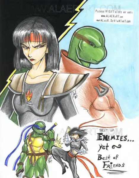 Так же она часто козни строила черепашкам. В итоге всех событий она стала неровно дышать к Леонардо.