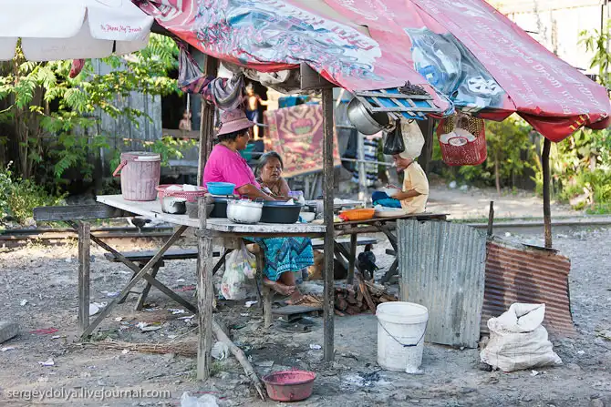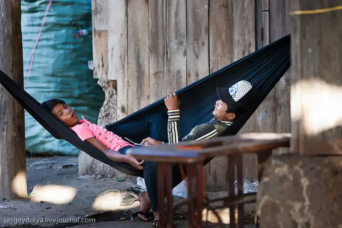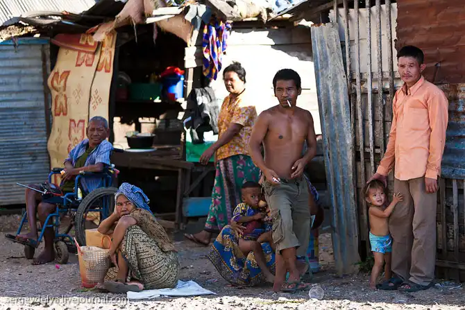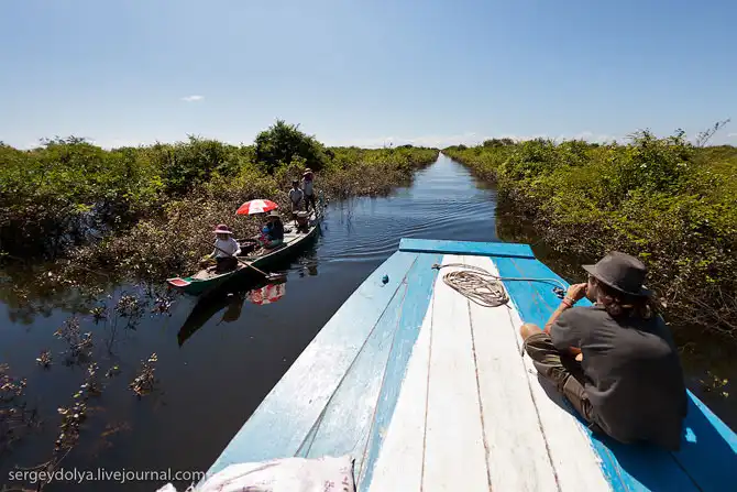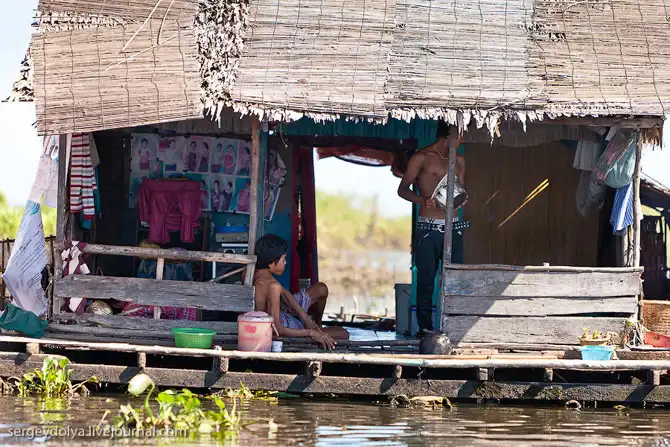 Все «удобства» в соседних кустах. Дети учатся в сараях, вместо школ. Часть людей живет на воде и в гости друг к другу ездят на лодках. В Пномпене – столице Камбоджи – парикмахерские кресла стоят прямо на тротуарах, как в Индии… (c) sergeydolya