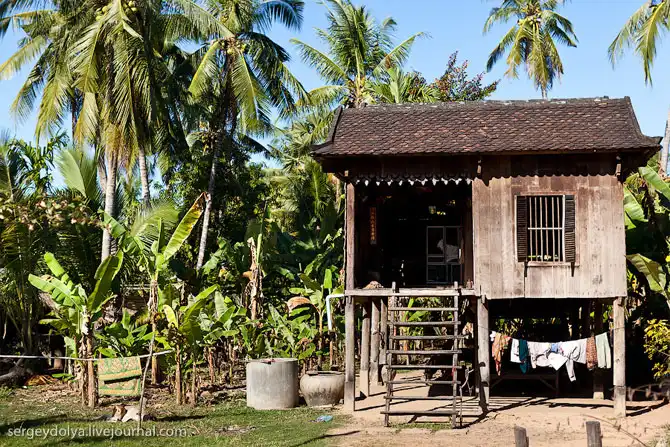 Во время сезона дождей большую часть Камбоджи затапливает водой, поэтому дома здесь строят на сваях: