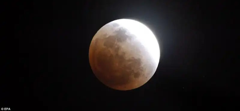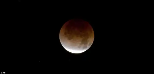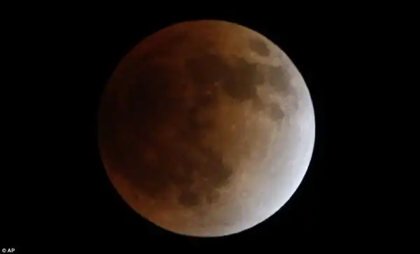 Лучшие места для обзора лунного затмения были у жителей западной части Америки, Гавайев, северо-западной Канады, Австралии, Новой Зеландии и центральной и восточной Азии. На фото: солнечный свет все еще проходит через атмосферу земли и отбрасывает тень на луну. (AP)