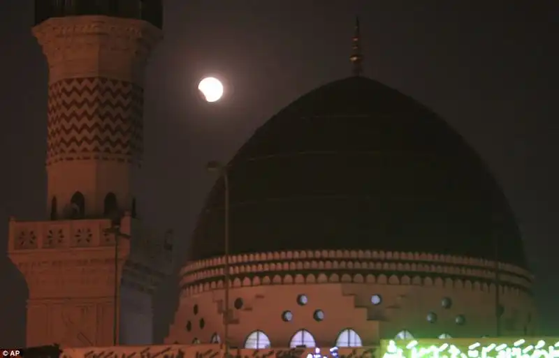 Лунное затмение в небе над знаменитым суфийским храмом Дата Дарбар в Лахоре, Пакистан. (AP)