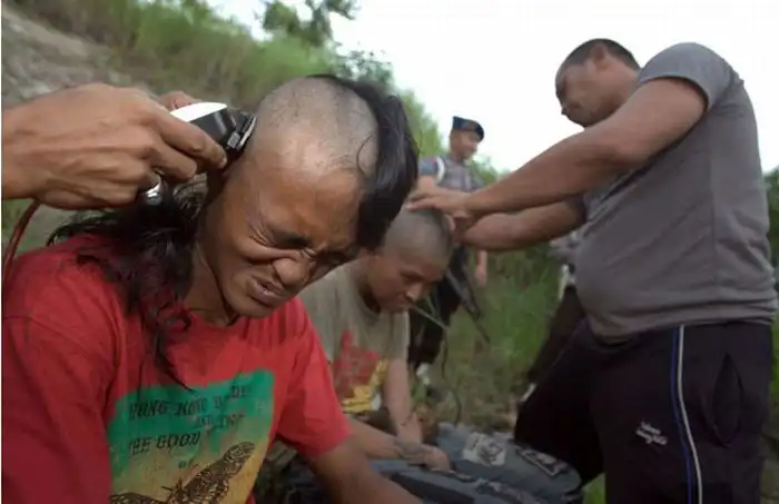 В участке их заставили снять все украшения, обстригли налысо и попросили искупаться в реке.