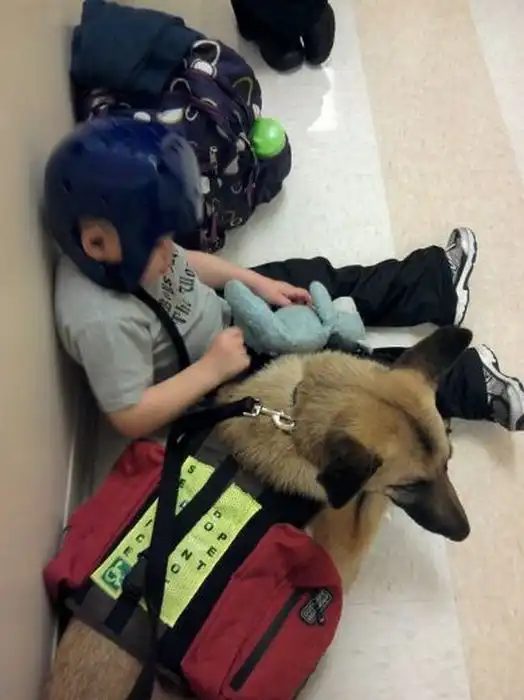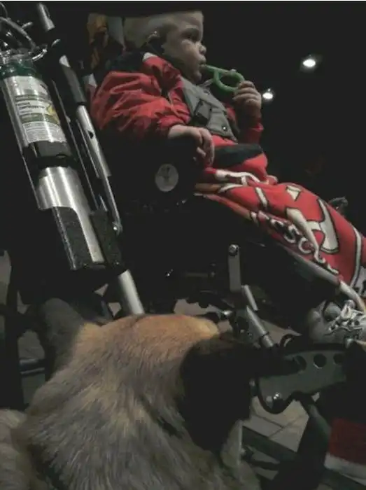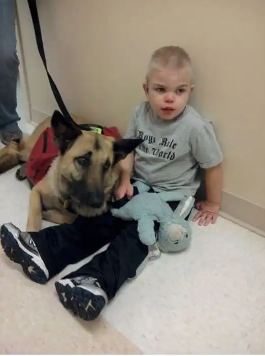 Овчарка ни на шаг не отходит от малыша и даже в больничной палате, собака не перестает оказывать поддержку.