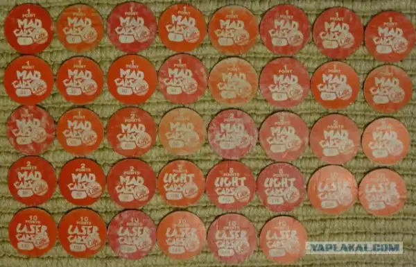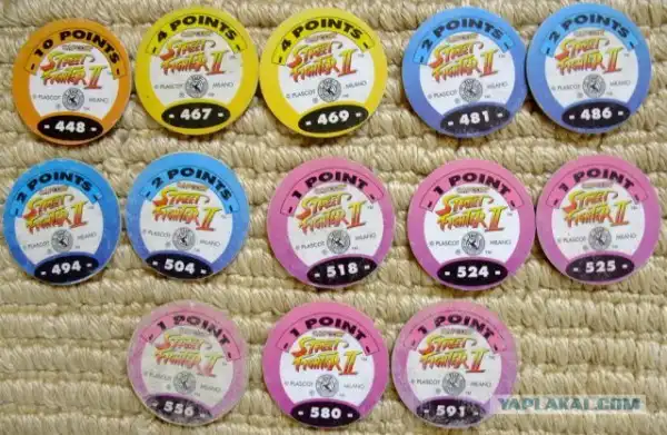 да, я могла целыми днями играть, забывая про обед и ужин. Пластиковые ценились, но их надо было легонько бить) И еще у нас на асфальте было только три ровных места, без камешек) А если маленькая фишка попадалась, то ее обычно вниз стопки ложили, чтобы когда бьешь не выскакивала)
