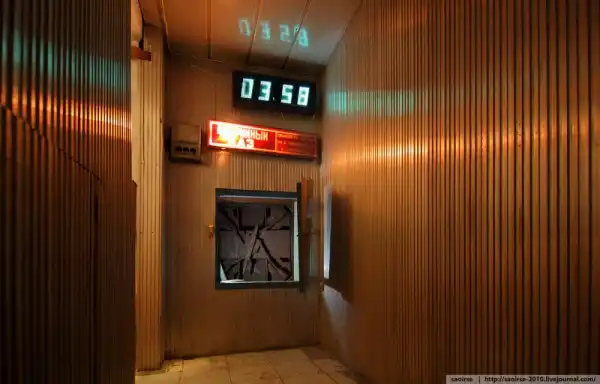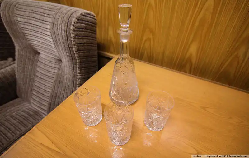 Графин и три рюмки... Что-то мне подсказывает: не воду сюда наливают! Оно в принципе и логично: ведь если здесь кто-то окажется, значит наверху явно не все спокойно.