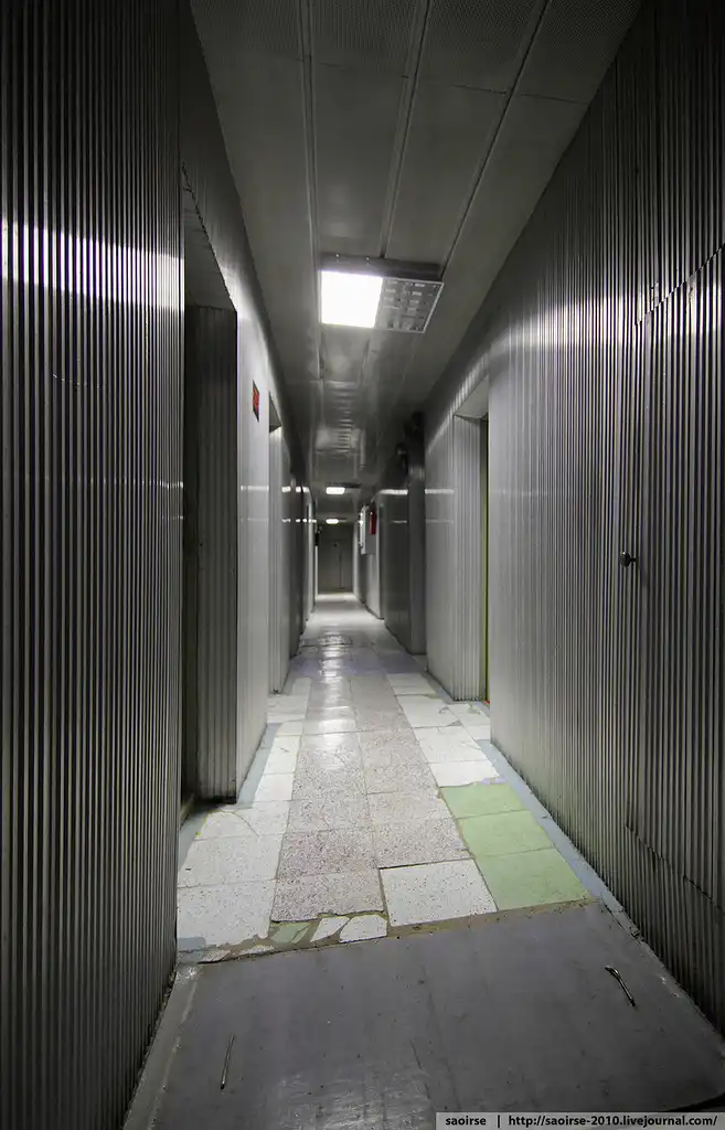 Протопав немного по узкому проходу аварийного выхода, оказываемся вот в таком коридоре. Убежище само по себе очень небольшое и расчитанно только для важных персон высшего руководства.