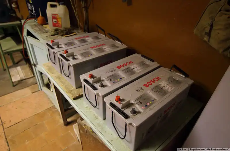 Аккумуляторы. Рядом с ними были небольшие станки для мелкого ремонта оборудования убежища.