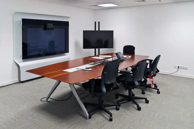 В каждой переговорной есть телевизор, работающий как экран, таким образом решилась проблема с проекторами.