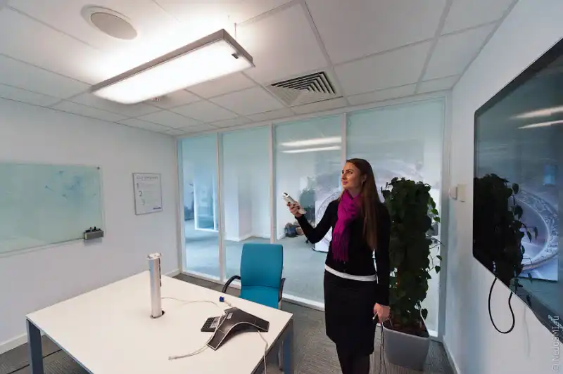 В переговорных можно менять цвет, яркость и интенсивность освещения от желтого до голубого как в операционной.