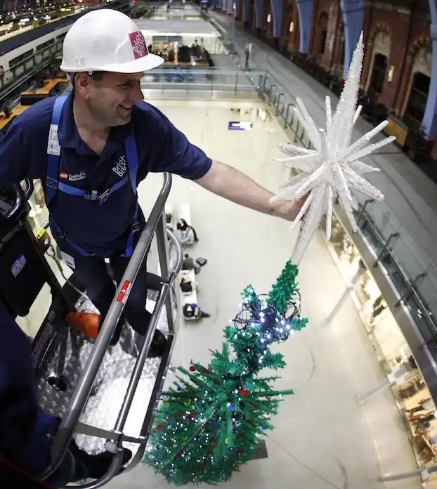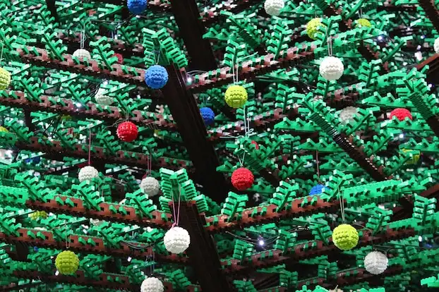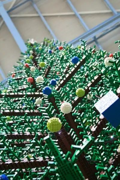 Такого вы еще не видели! 40-футовая рождественская елка, полностью сделанная из Lego! Художник Duncan Titmarsh с помощью школьников и скаутов построил ее из 600 тысяч кубиков конструктора. Она украшена 1200 шариками и гирляндами, которые висят на 172 ветках. Это самая высокая в мире ель, сделанная из конструктора!