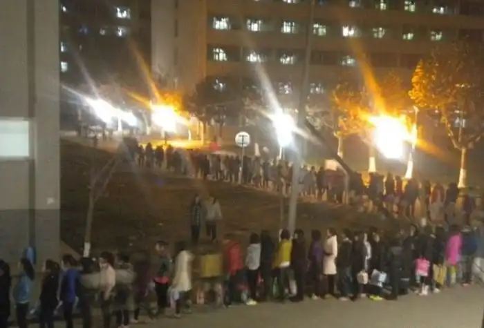 Эта очередь из китайских студентов, которые хотят принять душ.