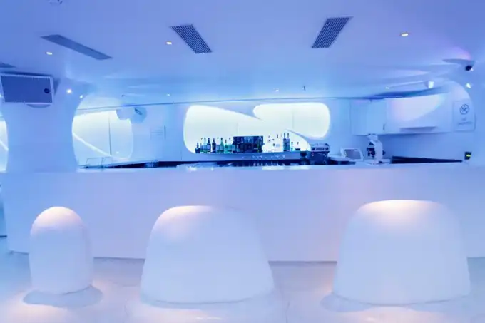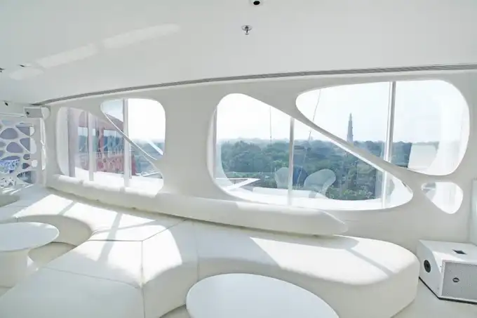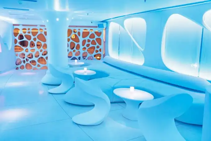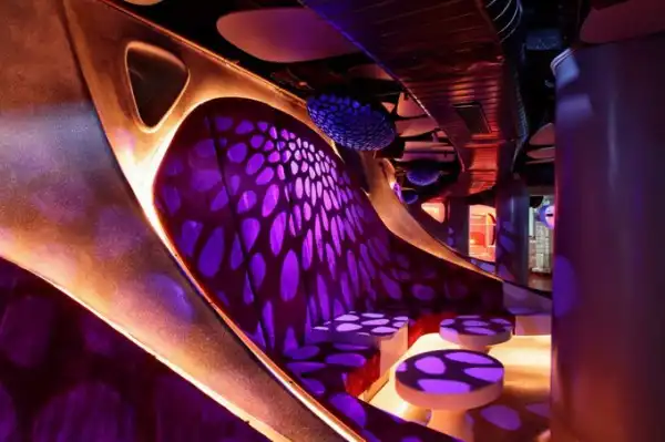 Ресторан The Smokehouse Room напоминает своим интерьером космические корабли научно-фантастических фильмов 80-90-х. К нему также примыкает ночной клуб SHRoom. Все это находится в Нью-Дели в Индии. Проект представлен студией дизайна и архитектуры Busride Design.