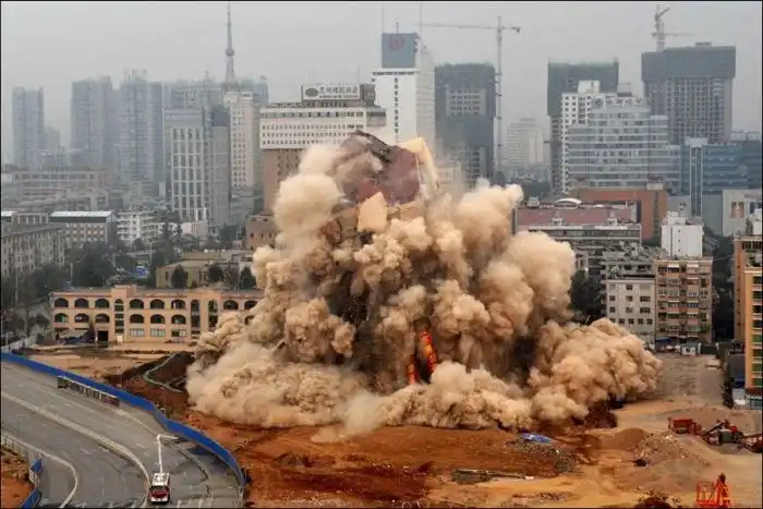 В китайском городе Куньмин снесли 80-метровое здание с помощью запланированного взрыва.