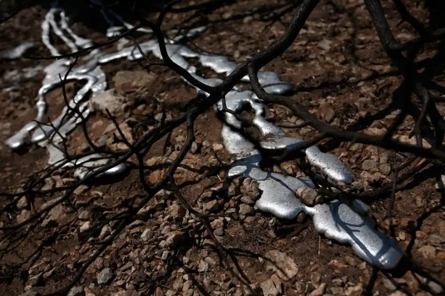 Металл расплавился во время лесного пожара возле разрушенного дома в районе Гейнс Бенд недалеко от Строна, штат Техас, 26 апреля 2011 года. Лесной пожар уничтожил в этом районе более 167 домов.