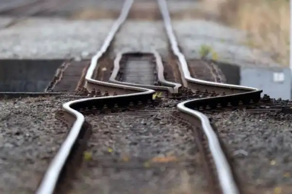Рельсы, покореженные в результате смещения земной коры, были сфотографированы в городе Крайстчерч, Новая Зеландия, на следующий день после землетрясениея магнитудой 6,3 балла, 23 февраля 2011 года.