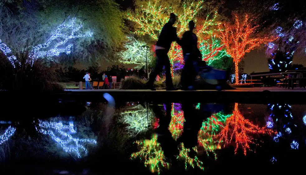 30. Люди прогуливаются по зоопарку Феникса. Подсвечиваемые декорации будут находиться в зоопарке до 8 января 2012 года. (AP / Matt York)